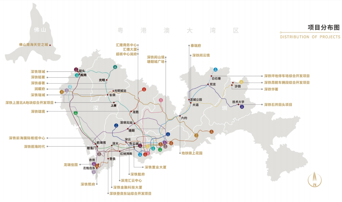 深铁置业为深铁集团全资子企业,2022年、2023年连续两年荣膺“深圳市房地产开发行业综合实力十强“榜首 探索并形成国内领先的“轨道+物业“开发模式,