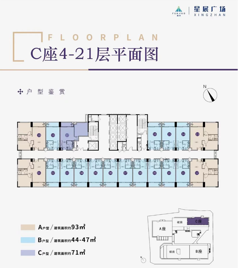【设计亮点】A座电梯17部:采用目的地楼层指引系统,高区电梯达4m/s,安全高效;