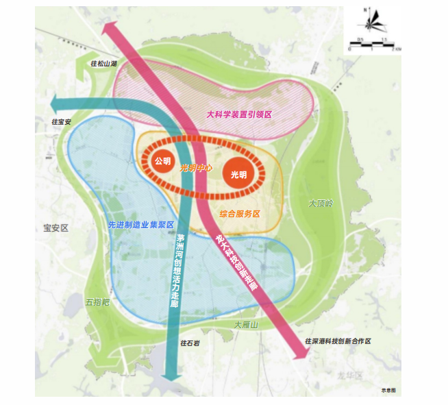 【大科学装置集群核心区】随着光明区《“十四五"规划》中"一心两区,一环双廊"空间发展格局的明确,公明片区被赋予发展大科学装置集群的重任,大科学装置集群核心区将重点建设瞄准国际科技前沿、引领科技发展方向的世界级稀缺性大科学装置。作为光明四大先进制造业园区之一的公明先进制造园区,将成为新型材料、生物医药等高新企业的聚集之地。