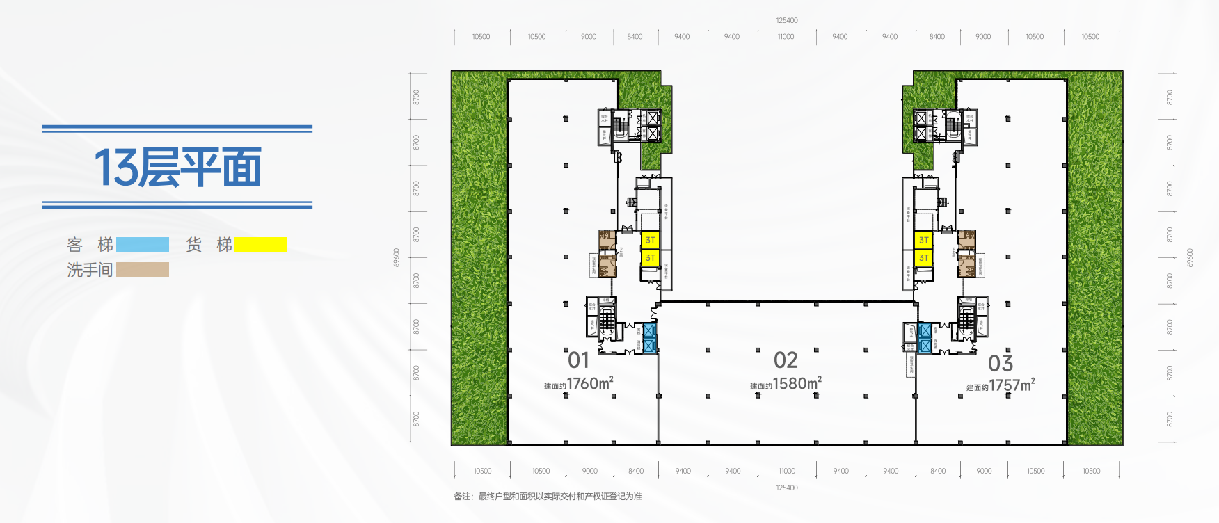 每栋配置16台电梯,8台客梯+8台货梯,客货分流,生产办公互不打扰,高效有序