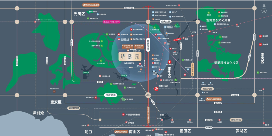 龙华,地处深圳地理中心和城市发展南北中轴,在深圳十四五规划中,明确龙华与大前海中心、福田-罗湖中心,并列成为深圳三大“都市核心区”。龙华区南连福田,北接东莞,承南启北,贯通东西,成为湾区之核的中轴新城。