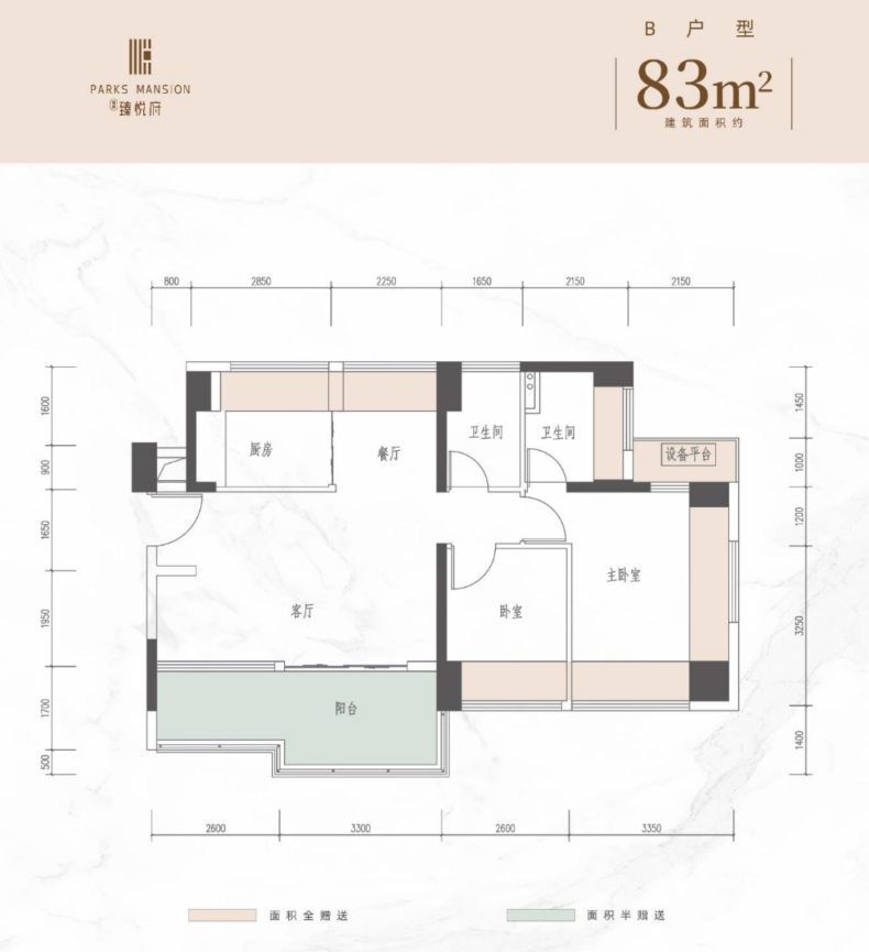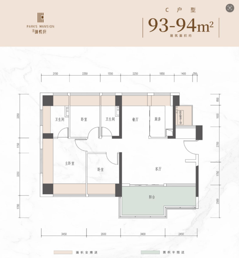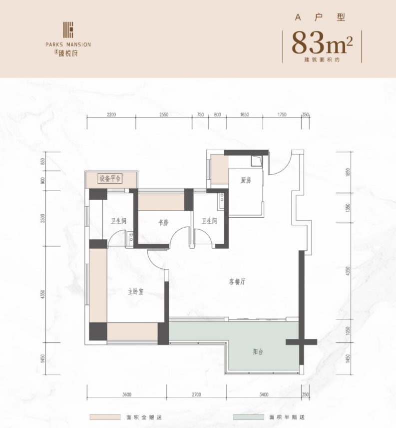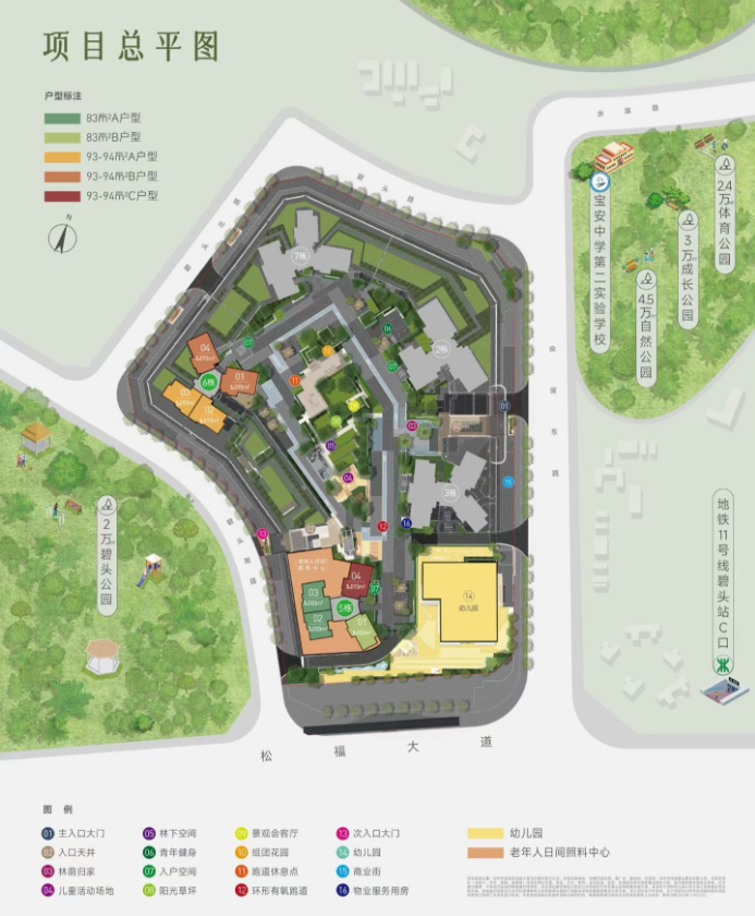 在售建面:83㎡ 3房2卫和93㎡4房2卫