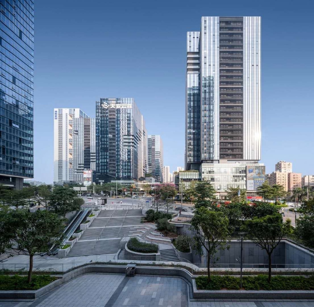 双子塔设计:左右核心筒通过空中花园互联,高品质空间体验;